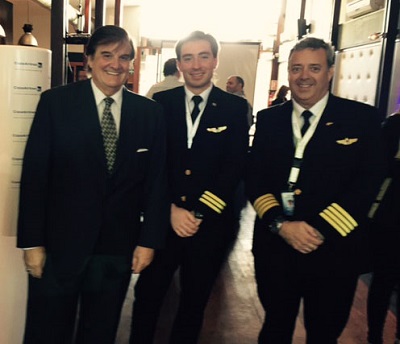 En la fotografía Hugo Perelli, Gerente General de COPA Airlines en el Uruguay, y los dos pilotos uruguayos, Comandante Marcos Minervino y Primer Oficial Gonzalo Aycaguer, que tuvieron a su cargo la realización del vuelo inaugural que consolidó las nuevas cuatro frecuencias.