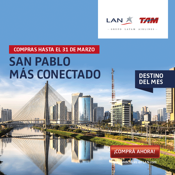 Consultar términos y condiciones del Programa LANPASS en www.lan.com/lanpass
