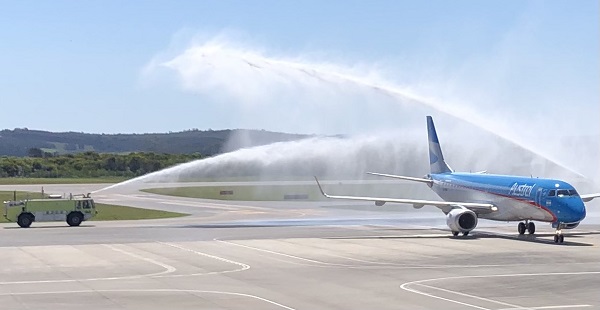 Cabe destacar que el vuelo inaugural fue realizado con el Embraer E190 matrícula LV-CMA, el único ex Austral que ya luce el esquema de Aerolíneas.