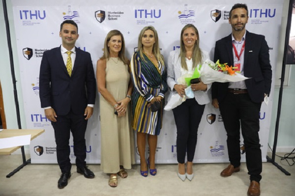 De ITHU: Martín Monzeglio Director, María Marta Irazusta Secretaria Ejecutiva, María Dárdano Directora de Eventos, Verónica Rodríguez Directora de la nueva carrera, y el Presidente de Cruz Roja Uruguaya Daniel Pirotto.