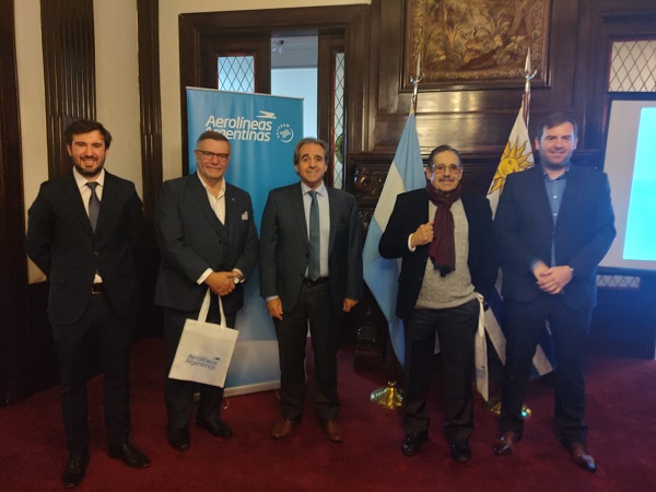 En una presentación que tuvo escenario en la Embajada de Argentina en el Uruguay, en la que participaron el Subsecretario del Ministerio de Turismo, Remo Monzeglio y el Presidente de AUDAVI, Carlos Pera, el Secretario de la Embajada, Ignacio Méndez, puso de relieve la importancia de la doble mano turística que por vía aérea posibilita Aerolíneas Argentinas.