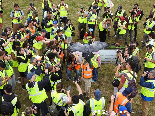 Los participantes también pudieron retratar a Cetrería del Sur, la empresa especializada en servicios de control aviario y fauna en el Aeropuerto de Carrasco, que realizó exhibiciones con su plantel de aves y con Celeste, la perra que integra su staff de animales.